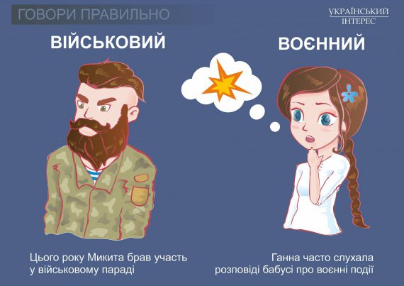 Українці часто плутають такі слова, як "військовий" і "воєнний", "складати" і "здавати". Вживають їх неправильно.