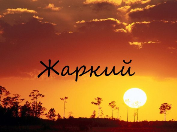 ЖАРКИЙ – так кажуть про пору року або дня, місцевість. "Дні стояли жаркі й безхмарні" (Зінаїда Тулуб).