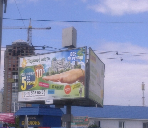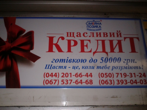 Коли "під рукою" стільки тексту і стільки мовних огріхів, не знаєш, за що й хапатися. В принципі, словники фіксують вислів "під рукою" як припустимий, але перевагу віддають усе ж слову "напохваті". Втім, головна вада цього і безлічі подібних оголошень, у яких потопає Київ, – це слово "розстрочка". І це при тому, що всі грамотні люди знають: російською говоримо "рассрочка", українською – "на виплат". І не кажіть, що "народ не поймьот". "На виплат до 5 років", – піднесіть руку, хто не розуміє?