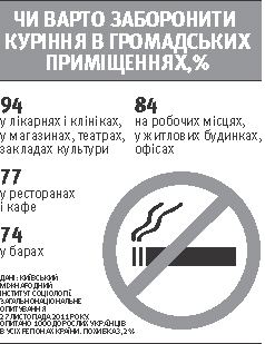 — Окрім того, дві третини курців кажуть, що хочуть кинути. Допомогти це зробити певною мірою може заборона курити у громадських місцях.