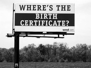 Реєстрація Барака Обами кандидатом у президенти відбулася на основі виписки з довідки про народження — без назви лікарні, прізвища лікаря і без підписів. У ній ішлося, що Обама народився в Гонолулу на Гавайях. Проте цю виписку вважають фальсифікатом, оскільки не було знайдено жодних підтверджувальних записів.