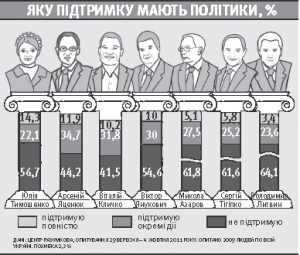 — Він втрачає підтримку населення швидше, ніж свого часу Ющенко. Водночас рейтинг опозиційних лідерів зростає, але не радикально, бо вони не проявляють себе як національні лідери. Проблемою Тимошенко завжди був високий рівень недовіри. Попри це проти процесу над екс-прем'єркою виступали і ті, хто її не підтримували під час президентської кампанії. Бо всі побачили, як діє в нашій країні вибіркове правосуддя.