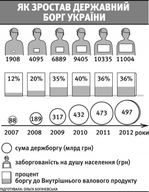 Ситуація з державним боргом України з кожним роком ускладнюється. Він становить майже 500 млрд грн. На кожного українця припадає понад 11 тис. грн боргу. Це збільшує навантаження на нашу економіку, каже експерт Борис Кушнірук, 44 роки.