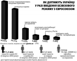 — Ідея безвізового в"їзду на територію ЄС об"єднує 70–75 відсотків українців за винятком пенсіонерів, які не можуть покинути країну через брак коштів, роботу на городі чи біля худоби. Навіть потрапляння України в двадцятку найрозвинутіших країн людей цікавить менше, ніж скасування віз до Євросоюзу. Для них це нагода встановити контакти з європейцями, побувати там, куди раніше не пускали. У перші рік-два після скасування візового режиму кількість українських туристів збільшиться вдвічі порівняно із теперішніми обсягами. Бо Європа не така дорога, як здається. Солідні курортні країни в Італії чи Іспанії пропонують відпочинок за ціною іноді меншою, ніж вітчизняний Крим чи Туреччина.