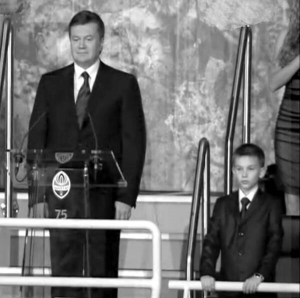 На святкування 75-річчя футбольного клубу ”Шахтар” президент Віктор Янукович приїхав на ”Донбас Арена” у Донецьку з онуком Віктором