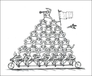 Лише один приклад. Як ви думаєте, чому більшість сучасних держав не зацікавлені в розвитку системи державної освіти? Чому вона деградує навіть у багатих країнах? Тому що це велика й дуже дорога піраміда. В її основі — дошкільна, початкова та середня освіта, де задіяно десятки мільйонів людей та величезні державні витрати. Далі — мільйони людей задіяні у вищій освіті. Ще вище — аспіранти, кандидати й доктори наук. Нарешті, на верхівці піраміди — вчені світового рівня. Саме вони спроможні на найбільшу віддачу й тисячократно повернути вкладені в них кошти. Реальна вартість такого вченого визначається не його зарплатою, а коштами, вкладеними в нього та в пов"язану з ним частину освітньої піраміди. Його успіх — це результат поєднання його особистих зусиль і зусиль сотень тисяч його співвітчизників.