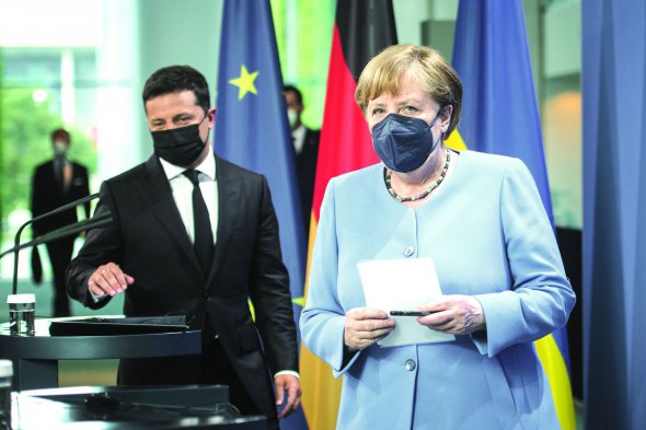 12 липня в Берліні президент України 43‑річний Володимир Зеленський зустрівся з канцлером Німеччини Анґелою Меркель, 66 років. Лідери спілкувалися віч-на-віч близько 20 хв.