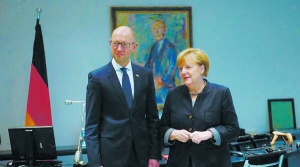 Персонально Анґела Меркель і німецький уряд стоять на форпосту захисту України — дипломатичного, політичного та фінансового. Німеччина підтримує санкції проти Росії, доки вона "не забереться з української території", каже Яценюк.