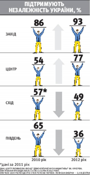 Критичне ставлення до незалежності на Південному Сході пов'язане з тим, що люди бачать мало можливостей реалізації себе в умовах цієї країни. Вони мають великі очікування покращення життя. Насправді, за різними дослідженнями, від 70 до 80 процентів громадян вважають себе патріотами. Переважна більшість людей все одно люблять землю, на якій вони народилися і живуть. Але люди вкладають різні сенси у поняття "любов до країни" і "любов до держави". Після Євро-2012 відсоток патріотів дещо зріс. Люди побачили, що тут можуть проводити досить знакові заходи, попри всі протиріччя. Також з'явилося розуміння внутрішньої відповідальності за країну, де, крім нас, ніхто проблем не вирішить.