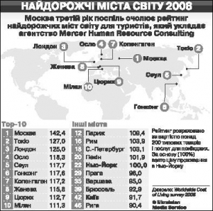 — У середньому ресторані Токіо обід обійдеться удвічі дешевше, ніж у Києві, — каже він. — А номер у п"ятизірковому готелі коштує там близько 700 гривень, тоді як у нас — 3500.
