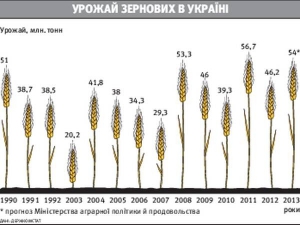 Цьогоріч Україна може зібрати 54 млн т зерна проти торішніх 46. Такий прогноз роблять у департаменті землеробства Міністерства аграрної політики та продовольства.