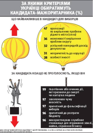 Люди голосуватимуть за тих, хто проклав асфальт у провулку чи оновив поштові скриньки в будинку. Є небезпека, що такі глобальні речі, як реформи, загубляться у вирі комунальних проблем. Логіка людей така — Верховна Рада нічого не робить, то хай нам бодай асфальт покладуть. При цьому виборець не розглядає як реформаторів і партії. Щодо них є ще більша розгубленість, ніж щодо мажоритарників. За якусь людину проголосувати легше, ніж за партії. Є конкретна обіцянка конкретної людини. А з партією складніше. Усі вони й політична ситуація загалом виглядають дуже одноманітно. І Партія регіонів, і "Батьківщина" торгують голосами. Комуністи пустили на передвиборну кампанію шалені кошти. Люди це бачать. УДАР Кличка і "Україна-Вперед!" Королевської відіграють роль нових політичних сил. Але це також стара ніша. У нас на кожних виборах є нова політична сила, яка займає третє місце.