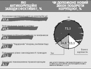 Дві третини українців не вірять, що Закон "Про засоби запобігання та протидії корупції" буде ефективним. Такими є результати телефонного опитування, яке наприкінці червня провів Інститут ім. Горшеніна.