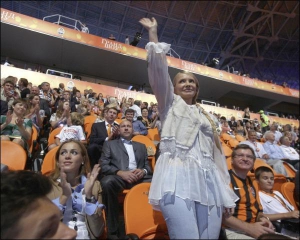 На відкритті футбольної арени вона із командою БЮТ розмістилася серед звичайних уболівальників "Шахтаря" — подалі від спецтрибуни, де сиділи Віктор Ющенко, Віктор Янукович, Рінат Ахметов, Володимир Литвин та інші. "Мені тут, серед людей, комфортніше", — пояснила прем"єр журналістам. І, на відміну від інших високопоставлених гостей, не почала виголошувати гучних промов. Адже найважливіші для Донбасу питання підтримки та розвитку вугільної галузі вона вирішувала з представниками шахтарського краю напередодні святкувань.