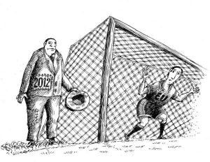 "Перед обідом Янукович передав м"яча Євро-2012 голові Ради ЄС Герману ван Ромпею. "Як нагадування про те, що це спільний проект з Європейською комісією", — сказав він, маючи на увазі фінальну частину Євро-2012, яку мають провести в Польщі та Україні. Усміхаючись, пан Баррозо відповів: "Футбол і спорт, якщо в них грати чесно, можуть зробити великий внесок у спілкування між людьми".