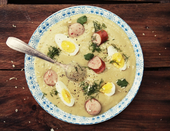 Це смачний простий суп, в якому поляки використовують так багато знайомих нам прийомів, що польський білий борщ має всі шанси отримати прописку на вашій кухні. До супу подають зварені вкруту яйця, один в один, як ми робимо для щавлевого супу. По-друге, в білому борщі бульйон виварюють з підкопченими ковбасками.