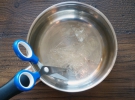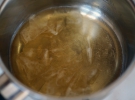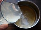 Ставимо сотейник з желатином на плиту і на повільному вогні тримаємо, поки він не розтопиться.