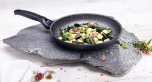 Сковороду з мармуровим покриттям дійсно можна назвати універсальною, бо вона підходить для приготування будь-яких страв. При готуванні можна використовувати мінімальну кількість олії, або обійтися без нього (особливо, коли йдеться про нову сковороду).