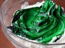Збийте вершки з цукровою пудрою і ванільним цукром. Потім змішайте крем із зеленим харчовим барвником, щоб отримати насичений колір.