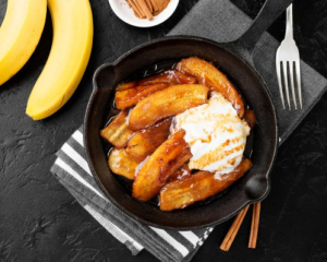 Поєднання карамелізованих бананів, рому та ванільного морозива робить цю страву ідеальним вибором як для пізнього сніданку, так і для солодкого завершення дня.