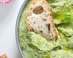 Перекладіть готову намазку у посуд і поставте в холодильник на декілька годин. Її можна мастити на хліб, додавати до печеної картоплі та м'яса.