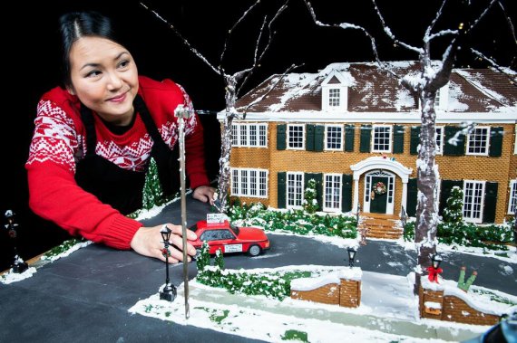 Там є навіть машина з доставки піци, фігурки Кевіна, його батьків, злодіїв, які намагалися продертися в житло й пограбувати його та навіть сусіда прибиральника з вулиці хлопчика. Усе з пряникового тіста і глазурі.