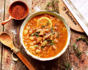 "Харчо присмачую соусом ткeмaлі. Можна замінити на томатну пасту, але тоді не буде сливового смаку. Щоб хоч трохи харчо відгонило фруктами, кладу ще сушену грушку або три сушені сливи. Копчені не підійдуть, бо перекриють весь смак", - пояснює жінка.
