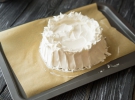 Випікаємо в розігрітій до 90 градусів духовці. Заготовку діаметром 16 см і висотою 5мс треба випікати 2 години. Якщо поспішайте, робіть заготовки тонше або підвищуйте температуру. Вище 120 піднімати не варто, меренга швидко пожовкне.