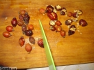 Вона використовує звичайний ніж, перерізаючи кожну ягоду навпіл. Також можна скористатися кавомолкою, головне, щоб окріп розчинив корисні речовини всередині.