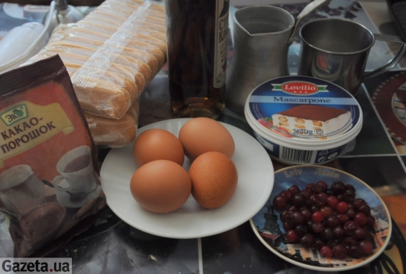 "Савоярді або "дамські пальчики" - легке та пишне бісквітне печиво, його головне завдання - увібрати в себе якомога більше кавово-коньячної вологи. Можна печиво спекти самостійно, але магазинне коштує 25 гривень і таке ж смачне як і домашнє. Перш за все потрібно заварити каву. Якщо ви робите це в турці, поставте її на плиту, злегка нагрійте, всипте 3 чайні ложки меленої кави і цукор. Потім залийте холодною водою - так, щоб рідина на два пальці не доходила до верху. Не перемішуйте, просто чекайте, коли кавова шапочка почне підніматися. Не дайте їй втекти, негайно підійміть турку і через 10 секунд поставте назад на плиту. І так 3 рази. Після цього кава готова, її треба перелити в глибоку тарілку й остудити, потім влити коньяк", - радить Ольга.