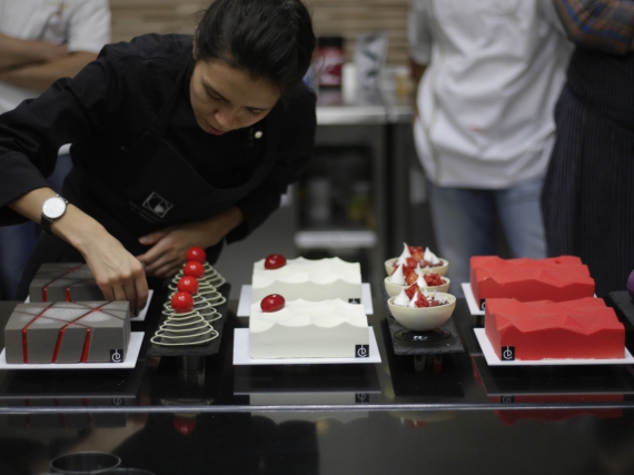 Харківський кондитер-архітектор Дінара Касько в Києві провела майстер-клас із приготування геометричних десертів, який онлайн транслювався в Індію та Китай.