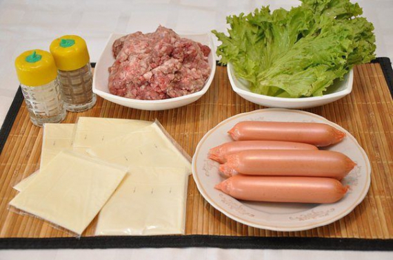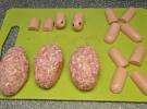 Фарш солимо і перчимо, формуємо котлети. Встромляємо в них "лапки", "хвостик", "голівку".