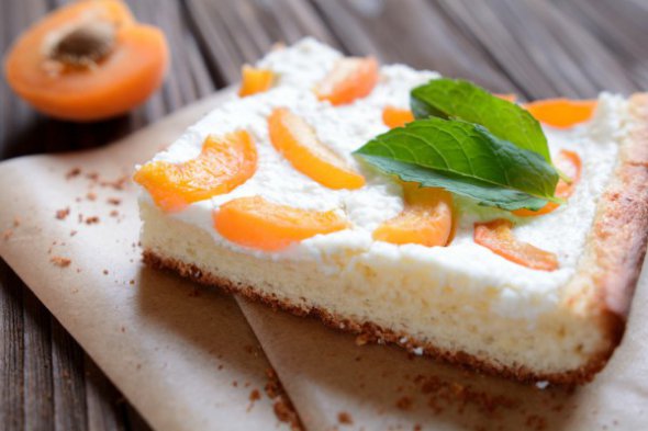 Ніжний сирний пиріг з абрикосами схожий на лінивий чізкейк. Готується він дуже просто. Потрібно збити міксером всі інгредієнти, перелити в форму, додати шматочки фруктів. Запекти і десерт готовий.