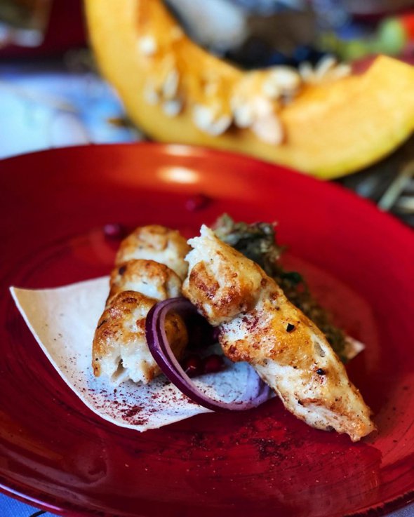 А от рибна страва - люля для Резо особлива. Його батько возив родину до шашличної у Батумі аби всі спробували рибний шашлик. Він був дуже ніжним і досі в пам'яті. Для страви використав українську щуку, а от доповнює страву маринований цвіт джонджолі.