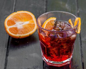 Італійський коктейль Негроні поєднує в собі сухий джин, біттер Campari і червоний вермут.