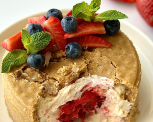 На вигляд - звичайний десерт, але варто його розрізати, і зсередини виливається ароматна ягідна начинка, яка підкорює з першого шматочка.