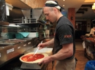 Кухар столичної піцерії "Мамаміа" Дмитро Дворський, 25 років, готує піцу із салямі, грибами й ананасами.