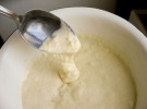 "Розмішував ложкою акуратними рухами. Зачерпував масу знизу вверх, щоб не пошкодити структуру білкової піни. Тісто вийшло доволі густе, з ложки сповзало повільно.