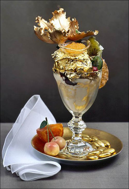 Цей десерт складався з п'яти кульок таїтянського ванільного морозива, приготованого на основі мадагаскарської ванілі. Смаколик покритий 23 шарами їстівного золота. Також до складу входить найдорожчий шоколад "Amedei Porcelana", шоколад з бобів какао з Венесуели, а також американська золота ікра. Прикрашають скибочками маракуйї, апельсина, цукатами з екзотичними фруктами з Парижа, марципановими вишнями, трюфелями, драже зі справжнього золота і зверху поливають арманьяком. Сандей подають в келиху з кришталю Harcourt разом із золотою ложкою вагою 18 карат на перламутровою раковині.