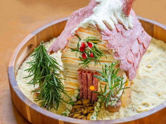 Ялини з розмарину, сніговики з моцарели, пармезанові і маслинові доріжки. Тільки от є один крихітний недолік - такий будинок боїться кімнатної температури, тож більшість часу він має стояти в холодильнику.
