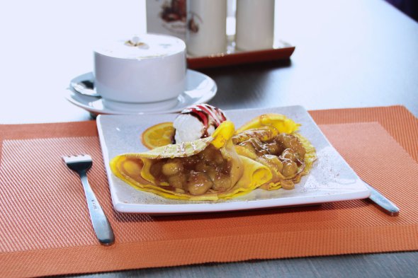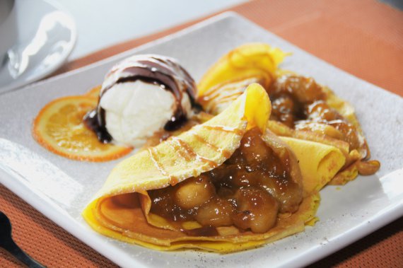 До традиційного рецепта кухар рекомендує начинку з карамелізованих фруктів. Наприклад, із бананів.