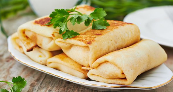 Млинці мають бути смачні, але нейтральні, щоб не відволікати від начинки. Вона буває ванільною або м'ясною.