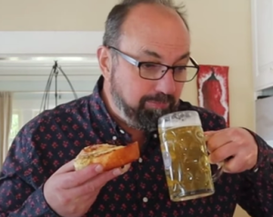 Поставте сендвіч у духовку та запікайте до золотого кольору. Подавайте із кухлем пива.