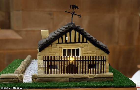 Торти зображують сільський паб, магазин, садибу та навіть модель мікроавтобуса громадського транспорту Bakewell & Eyam.