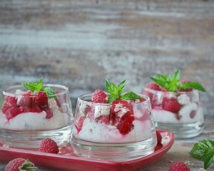 Цей десерт легкий, повітряний і дуже ароматний, завдяки свіжій малині і ніжним вершкам.