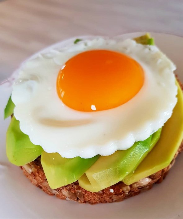 Підсмажити яйце і покласти на авокадо.