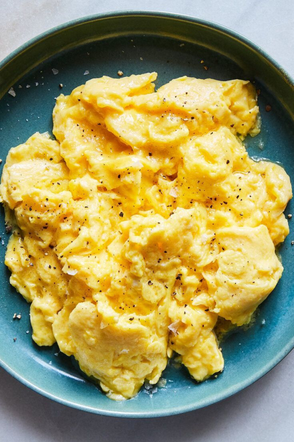 Для отримання більш рідкої яєчні, прогрійте її ще 30 секунд, коли вона виглядатиме наполовину готовою, і перемішайте до кремоподібної консистенції. Викладіть на тости.