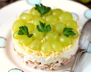 Салат "Тіффані" стане родзинкою столу. Це не просто страва, а справжній витвір кулінарного мистецтва, який прикрасить будь-яке святкове застілля. Його унікальний смак поєднує ніжність курячого філе, соковитість винограду та пікантність горіхів, а стильна презентація здивує ваших гостей.