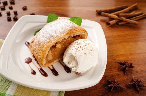 Готовий штрудель посипати просіяною цукровою пудрою.
