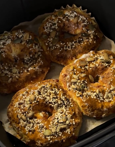 Поділіть на 4 кульки, сформуйте бейгли з отвором посередині.